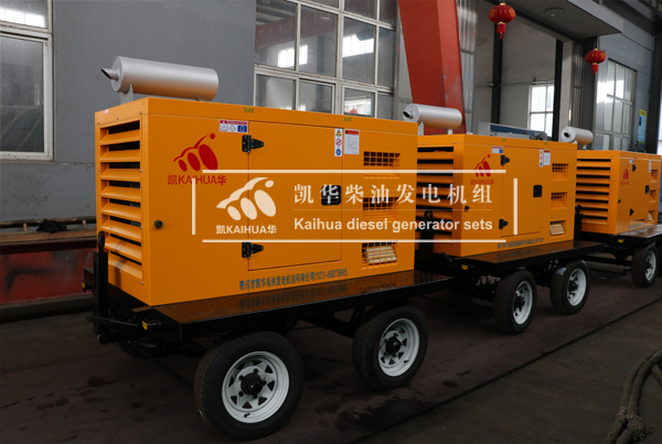 湖北防汛在我公司采購的十臺移動型柴油發電機組今日成功出廠,機組功率均為50KW,采用國產知名品牌玉柴股份發動機動力,配備凱華無刷發電機。我公司生產的移動型發電機組可隨車拖動,適用于戶外電力需求。下圖為機組出廠現場: